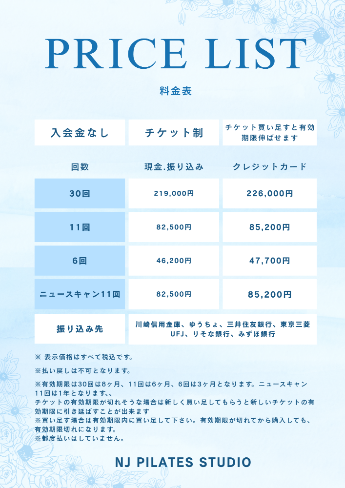 ピラティスを日々の生活習慣に変えて行くためチケット制にしています。